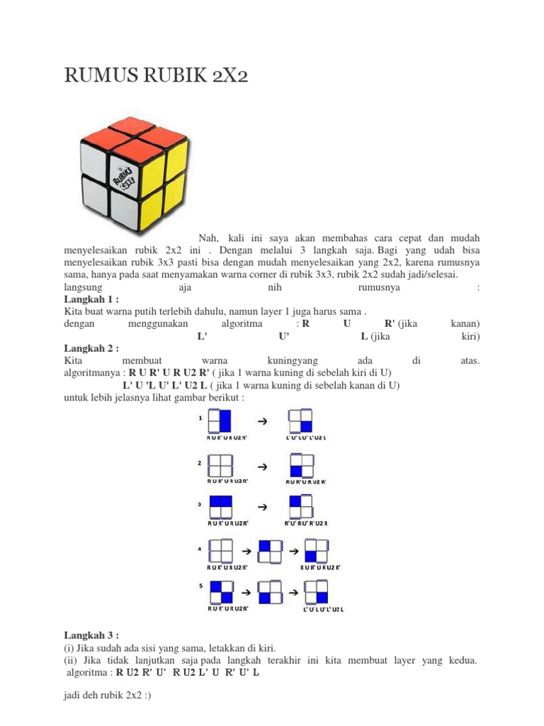 Save 5 w RedCard. Rumus Rubik 22 Rubik merupakan sebuah permainan yang menuntut daya imajinasi yang tinggi. Rumus Dasar Rubik 2X2 Untuk PemulaBagi yang sudah bisa menyelesaikan rubik adalah sangat gampang.